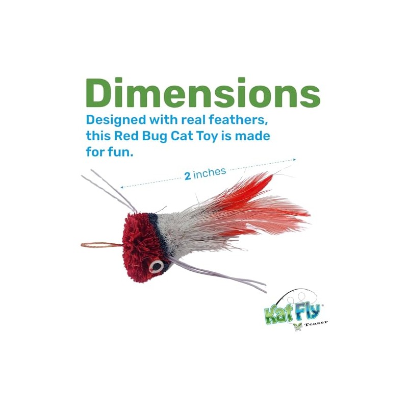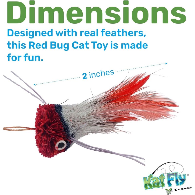 - This Cat teaser wand comes in Red Color. Body of bug is about 2 inches long.