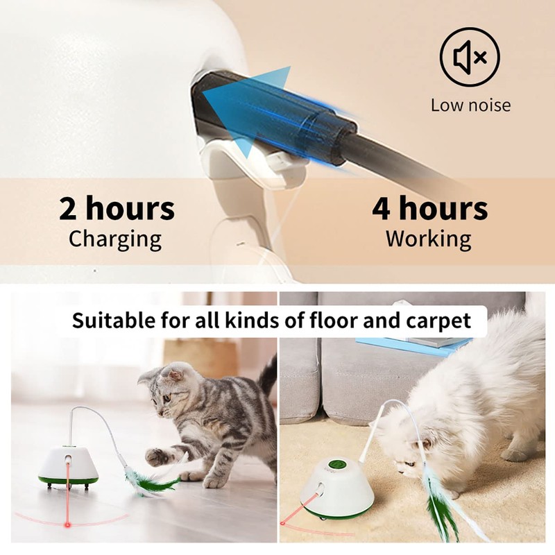 - 【Great Value Pack】Smart cat toy comes with 2 feathers, 1 ribbon, 1 pole and 1 USB charging cable. A variety of accessories keep cats fresh and stimulate their hunting instincts. Cats can also easily play by themselves when you go outside.