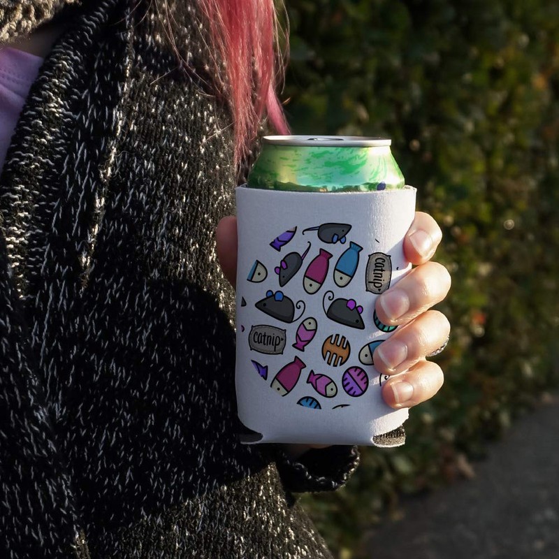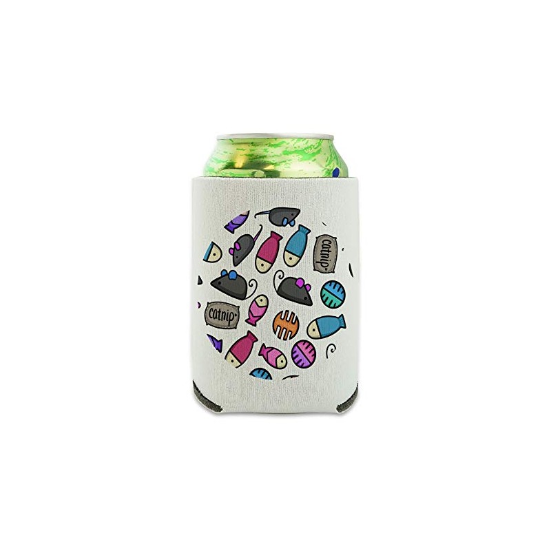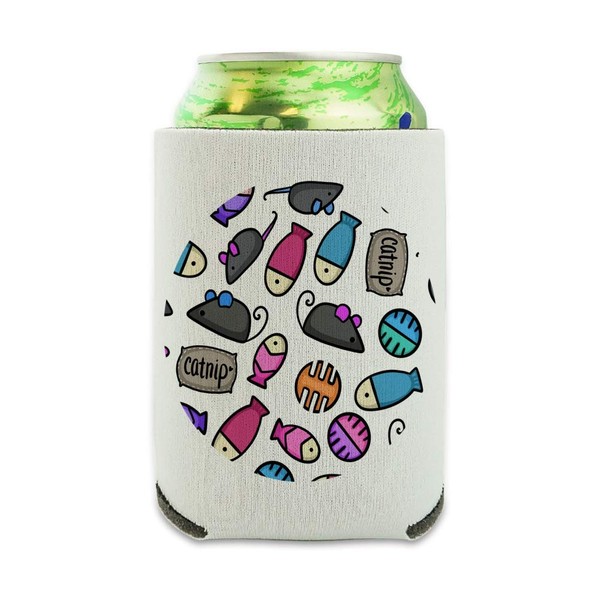 Cat Toys Mouse Fish Catnip Pattern Can Cooler - Drink Sleeve Hugger Collapsible Insulator - Beverage Insulated Holder