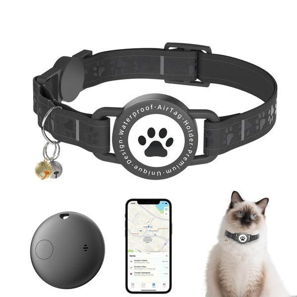 Cat Tracker Collar Waterproof - Cat Collar Breakaway - Smart Pet Activity Tracker - Breakaway Tractive with Reflective Pattern - Comfortable Padding, Adjustable (Black)