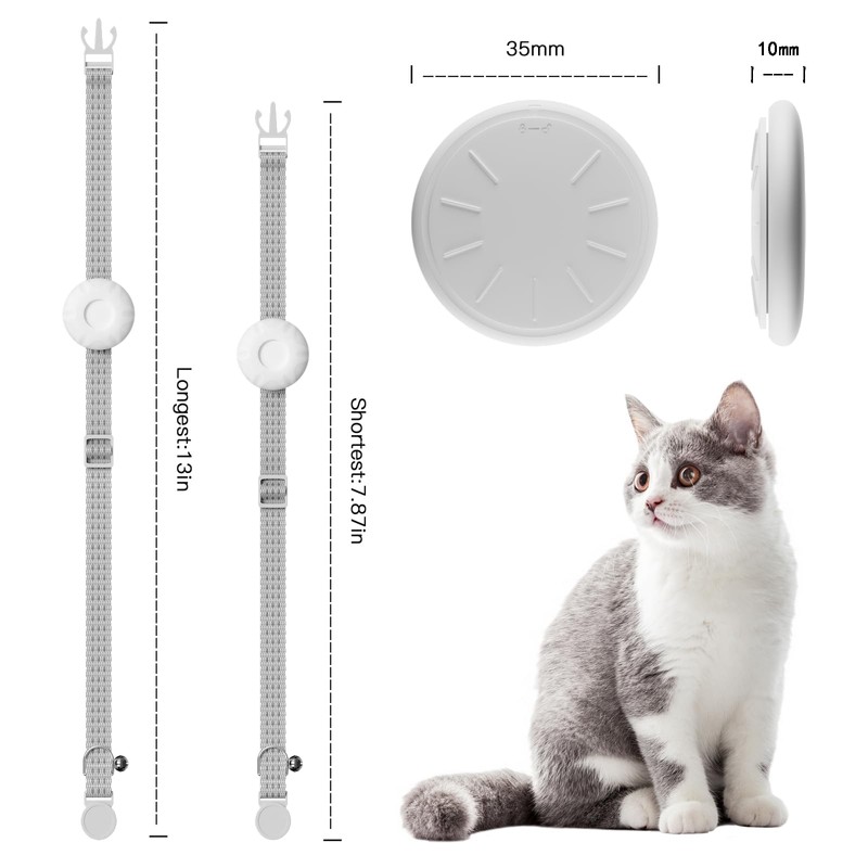 Cat Tracker,No Monthly Fee Cat Tracker Collar,Waterproof Pet Tracker for Cats with Safety Elastic Buckle,Works with Any Collar,Compatible with Apple Find My App (iOS Only) - White