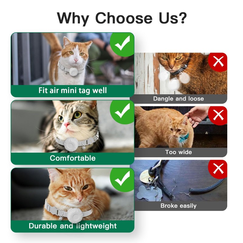 - 🐱【Global Tracking with Bluetooth Technology】Cat tracker tag utilizes Bluetooth Low Energy (BLE) to communicate with nearby Apple devices for seamless connectivity and to help pinpoint location. Therefore, if the cat tracker's tag is out of Bluetooth range, other nearby Apple devices can anonymously relay the location to the owner, thus ensuring wider tracking coverage.