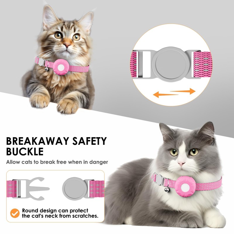 Cat Tracker, Waterproof Pet Tracker for Cats, Cat Tracker Collar with Safety Elastic Buckle, Works with Any Collar,Compatible with Apple Find My App (Only iOS), No Monthly Fee Pet Tracker, Pink