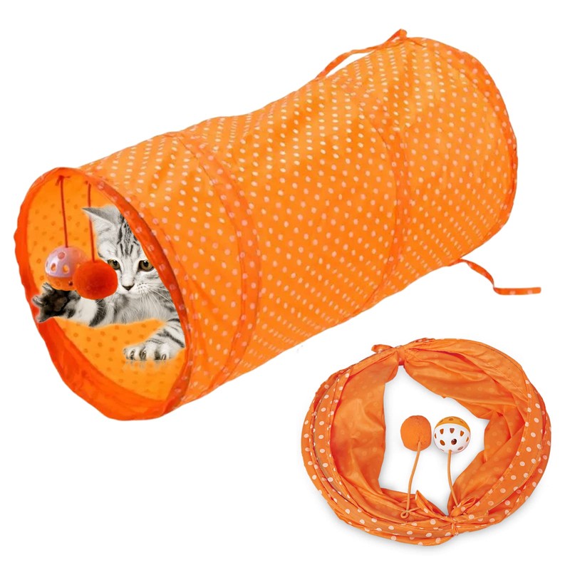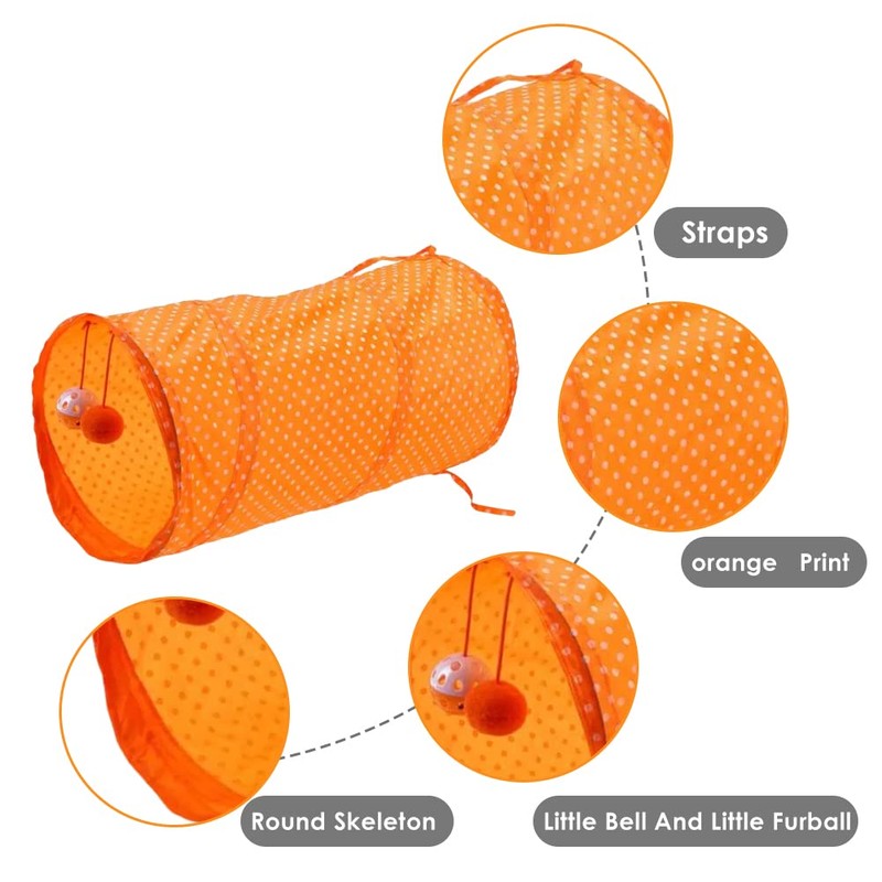 Cat Tunnel Toy, Foldable Pet Cat Tunnel, Cat Maze, Pet Play Channel, Orange Print Cat Channel, Bell And Wrinkle Ball, Pet Interaction For Kittens, Puppies, Rabbits