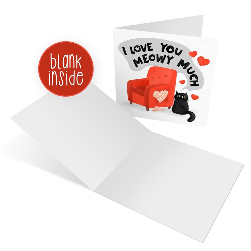 Cat Valentine Day Card for Wife or Girlfriend from Husband - Cute and Funny Birthday Card for Many Occasions for a Loved One - 'I Love You Meowy Much' - for Cat Mom and Dad