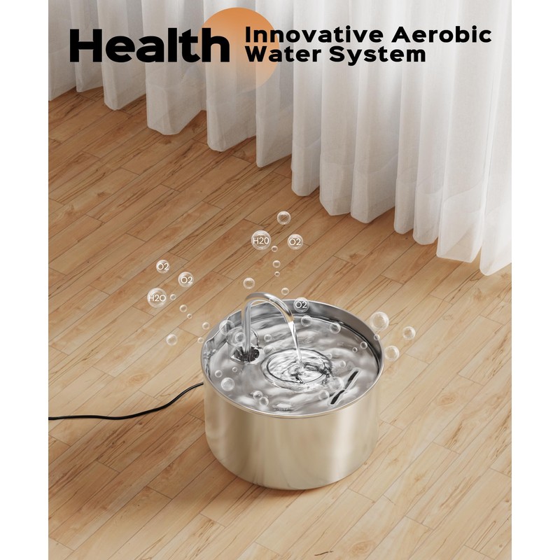 - 【Healthier - 304 Stainless Steel Material】Compared with plastic materials, the pet fountain made of stainless steel materials is more tough, better resistant to corrosion,longer service life, and no other material elements will penetrate into the water to ensure the safety of pet drinking water.