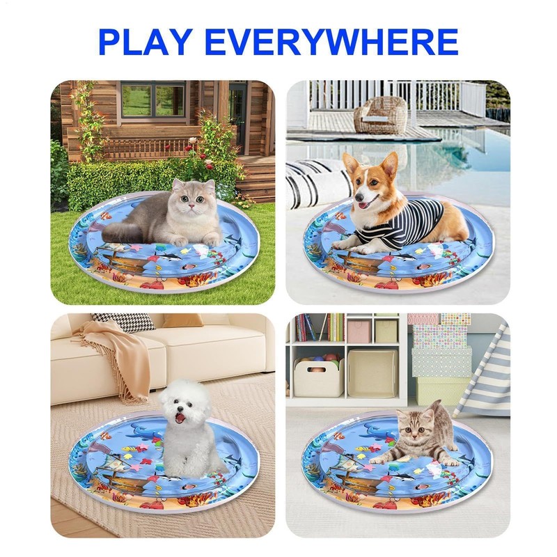 Transform playtime with your furry friend with Pet Water Mat. Featuring a vibrant sea theme, this innovative mat ensures long-lasting fun and exercise for your pet. Versatile in use, it's perfect for indoor or outdoor play. The cooling effect is ideal for hot days, keeping your pet refreshed and happy.