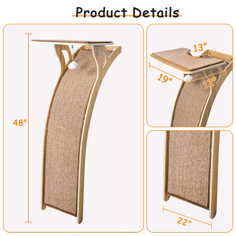 • Product Dimensions: The 48" tall vertical cat scratcher, provides a place for cats to sharpen their claws and strech fully. The top plateform fit for large medium cat, a cozy sunbed for them to rest on.