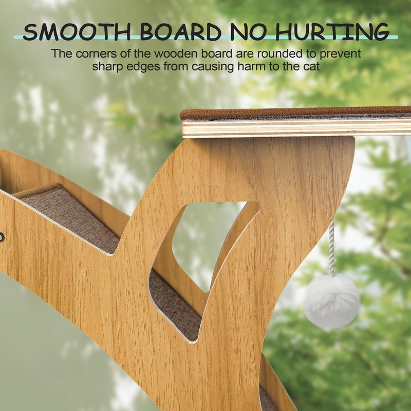 • Safe Sturdy: Made of solid wood multi-layer board, it is environmentally friendly, non-toxic and odorless. Combined with powerful suction cups, it remains firm without shaking, sliding or tilting, durable and does not deform. The edges of the wood board are artificially ground to prevent cats from being scratched. Please use it with confidence!