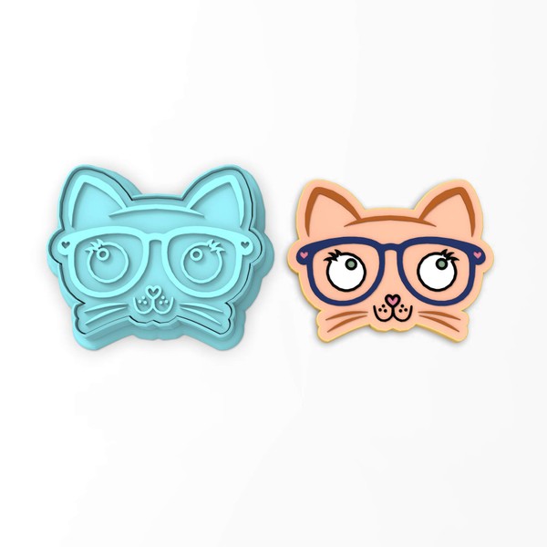 Cat with Glasses Cookie Cutter & Stamp