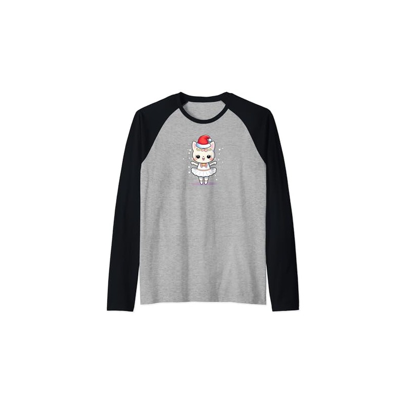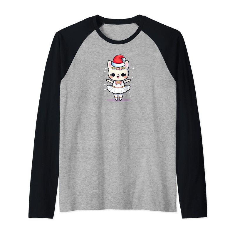 Cat With Santa Hat As Dancer Design Christmas Ballet Raglan Baseball Tee
