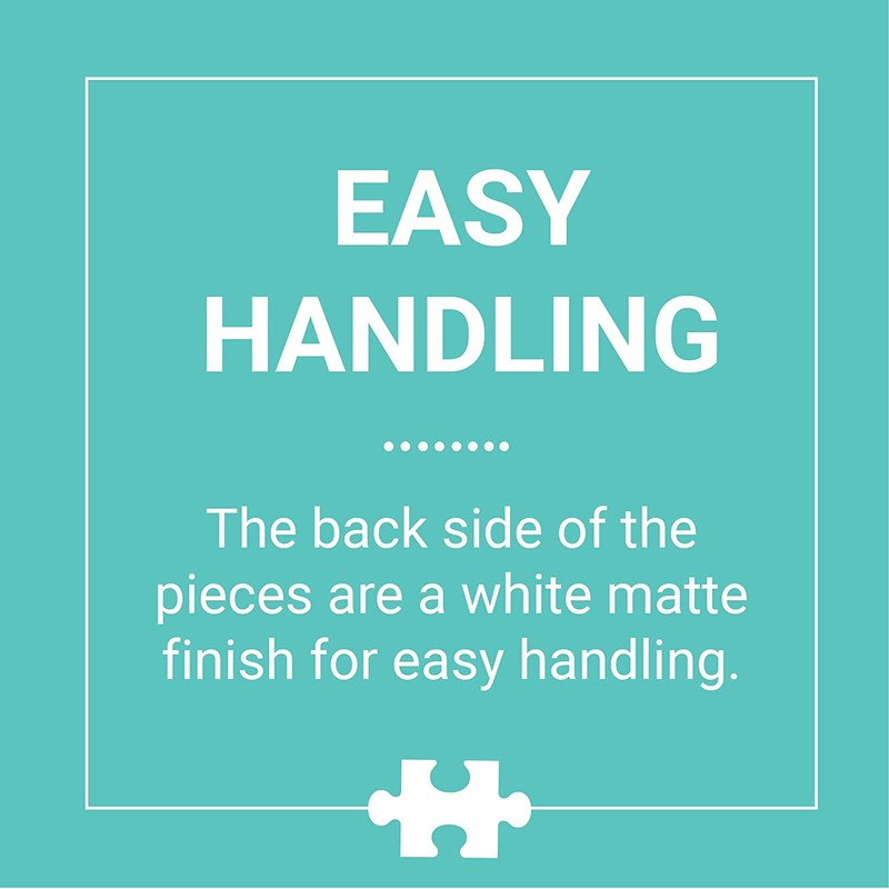 - EASY HANDLING: The 500 puzzle pieces are thick and sturdy, and the back sides are a white matte finish. The completed puzzle measures 20” x 20" and the package measures 8” x 8” x 1. 5".