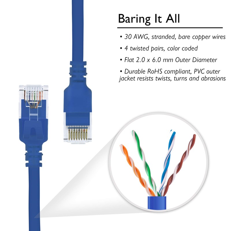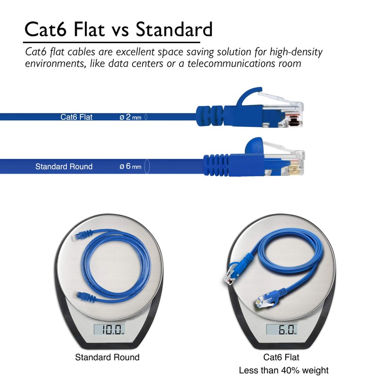 Cat6 Ethernet Cable 75 ft (10-Pack) GearIT Flat Internet Network Cable, Cat6 Patch Cords, Cat6 Cable, Cat 6 Cable, Cat 6 Ethernet Cable, RJ45 Connectors for Router, Modem - Blue 75 Feet