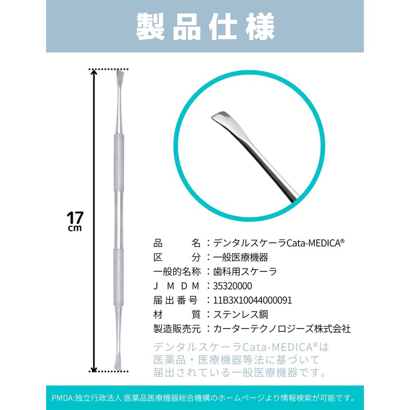 - ✅【医療機器】デンタルスケーラCata-MEDICAは医薬品・医療機器等法に基づいて届出されている「一般医療機器」です。PMDA:独立行政法人 医薬品医療機器総合機構のホームページより情報検索が可能です。