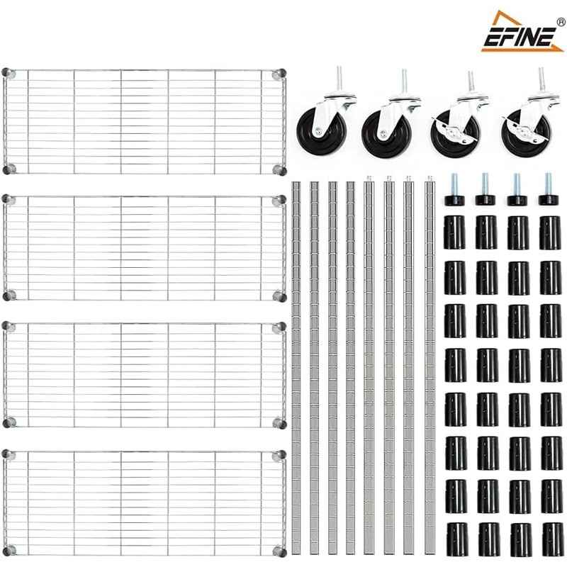 Catalina Creations EFINE 4-Shelf Wire Shelving Rack, Chrome Shelving Units and Storage on 3'' Wheels with 4-Shelf Liners, Adjustable Heavy Duty Steel Wire Shelving Unit for Garage, Kitchen, Office