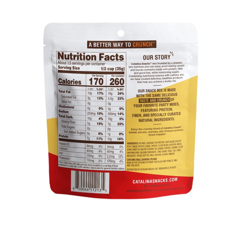- Low Carb Snacks With All The Flavor: Looking for healthy snacks for adults and kids? Cheddar is a cheese lovers dream including a blend of our best selling Catalina Crunch Cereal, chickpea pretzels, cheese crisps, and cashews. If you prefer mixed nuts try our Traditional containing a blend of our best selling Catalina Crunch Cereal, chickpea pretzels, cashews and pecans