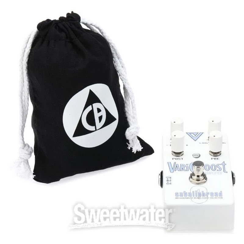 The Varioboost marks the return of one of Catalinbread’s most oft-requested legacy pedals, enhanced with a sizzling pre-boost soft-clipping control. Just like the original pedal, the Varioboost provides 12dB of boost or cut from 70Hz to 1.4kHz using the Freq control, along with a healthy injection of gain on top for hard-hitting boost utility. However, this pedal is no mere reissue — an all-new Pre control grants you access to a clipping circuit placed before the frequency boost for an even raunchier flavor. Combined with the flexible Post (volume) control, the Varioboost excels at everything from subtle EQ sculpting to squeaky-clean boost to slamming the front end of your amplifier into sweet saturation. Whether you’re a die-hard jazzer looking to smooth over your signal’s top end or a metal-obsessed guitarist aiming to surgically trim out your signal’s midrange, the Catalinbread Varioboost is a superb boost that tackles clean, dirty, and even overdrive tones with equal aplomb.