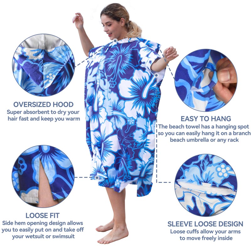 - Highly Absorbent: Crafted from premium microfiber, our surf poncho changing towel robe quickly absorbs moisture, ensuring you stay dry and comfortable after your surf session.