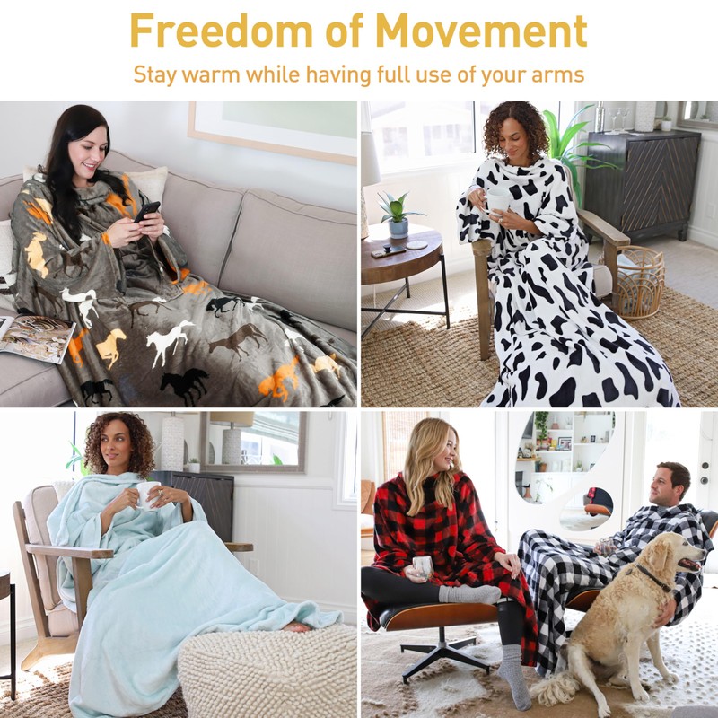 • One-Size-Fits-All: With a roomy and adjustable design, the sleeved blanket fits most body types comfortably, making it an ideal gift or personal addition to your home for everyone in the family.