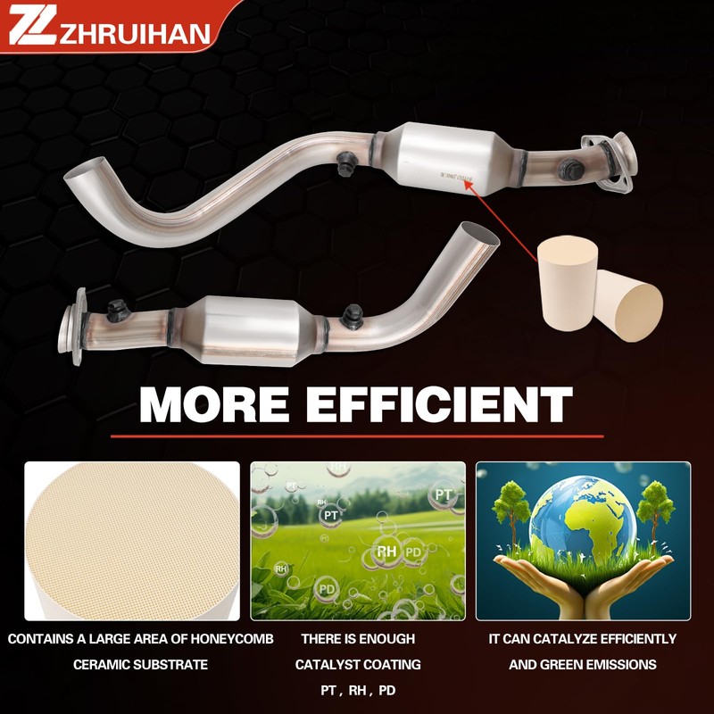 - 【High Quality】The main body of the catalytic converter is made of high-quality thickened stainless steel and advanced automated welding technology, and there will be no problems with long-term high-temperature use. The internal ceramic carrier contains precious metal catalysts, including Pt, Rh, Pd, which can effectively and quickly convert harmful gases into low-pollution carbon dioxide, water and nitrogen.