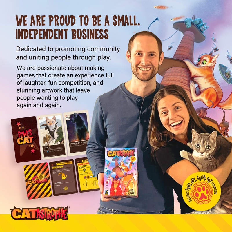 - PAWS OUT CLAWS OUT EXPANSION: Includes the original base game (everything you need to play) plus our special expansion pack, which adds 7 new characters, 7 new character player tokens, 16 new Power Cat Cards, and 52 additional CATastrophe cards. CATastrophe cards will have you competing in exciting mini games bringing out the animal in every player. More mayhem means more fun!