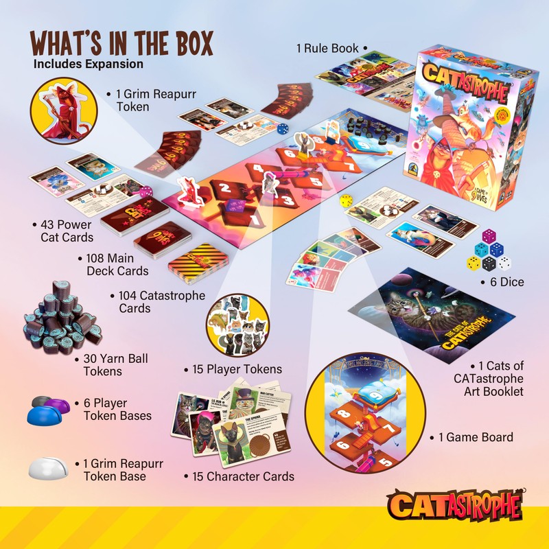 CATastrophe A Game of 9 Lives with Paws Out, Claws Out Expansion Pack!| The Purrfect Board Game for Family Night and Cat Lovers | Featuring Lil BUB & 19 Other Famous Cats | Ages 10+ | 2-6 Players