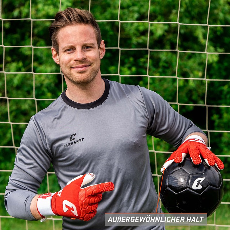 - CATCH & KEEP: From goalkeepers for goalkeepers! With the extremely strong grip, developed and manufactured in Germany, we convince even professional footballers and Bundesliga players of our professional goalkeeper gloves and goalkeeper equipment
