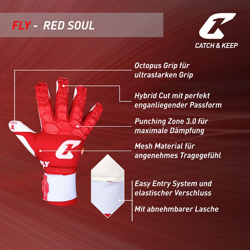 CATCH & KEEP Fly Red Soul Men's Goalkeeper Gloves, Size 11, Professional Goalkeeper Gloves, Thumb Support & Thicker Wrist Support