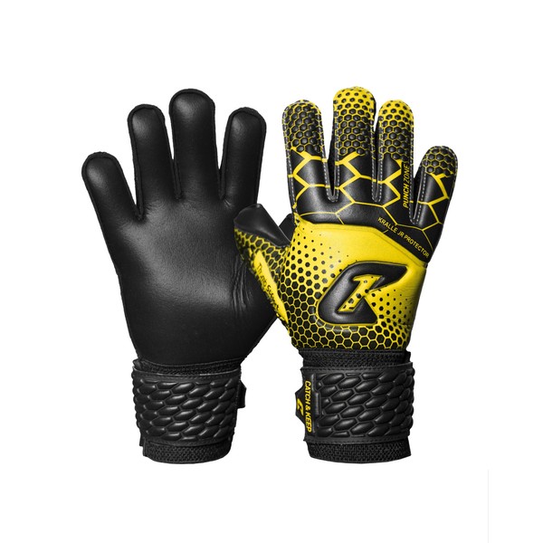 CATCH & KEEP Goalkeeper Gloves Children's Claw Protector Yellow Size 4 I Professional Children's Goalkeeper Gloves with Finger Protection, Thumb Support & Thicker Wrist Support
