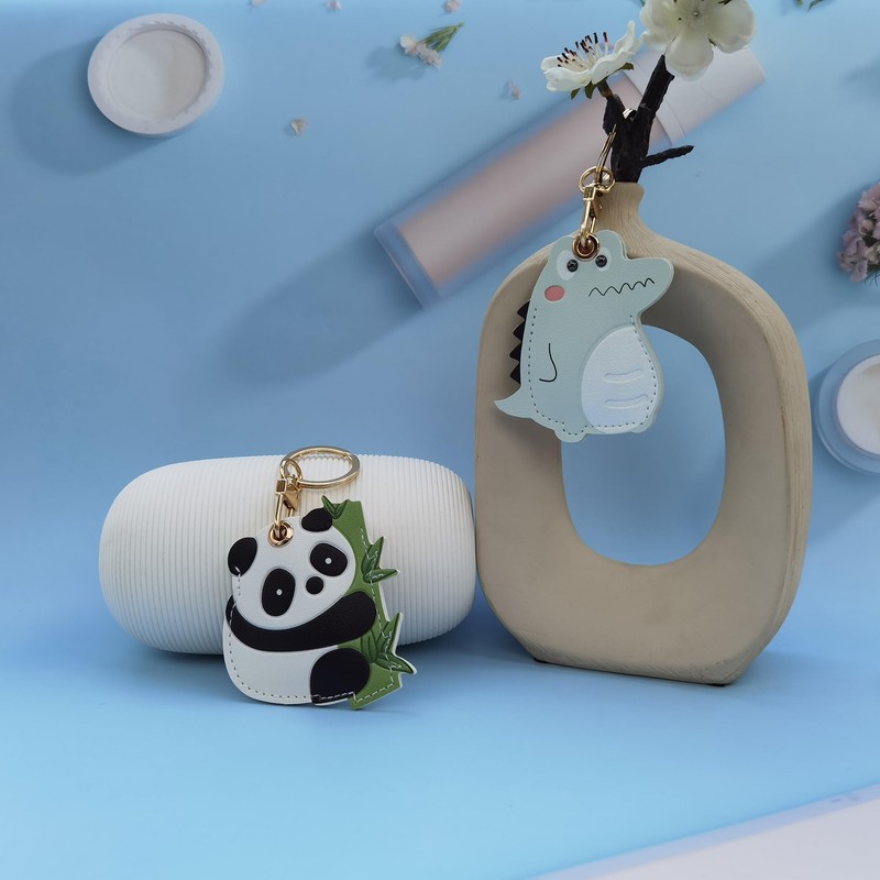 CATCH ON [Set of 2] AirTag Case, Set of 2, Air Tag Case, Air Tag Cover, Panda, Dinosaur, Cute, Animal, Leather, Full Protection, Anti-Loss, Shockproof, Lightweight