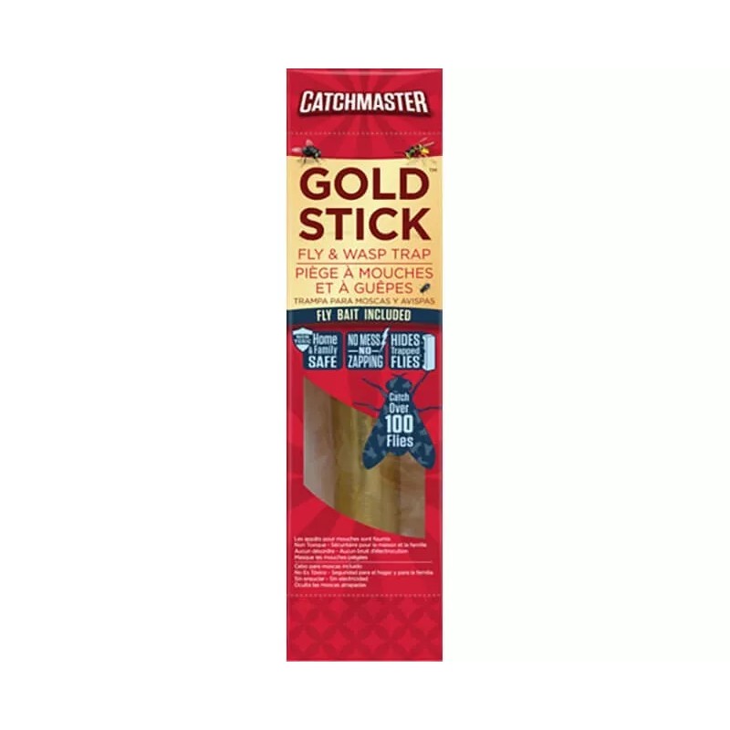 Catchmaster® Gold Stick™ Fly Trap is perfect for those who prefer inconspicuous fly control. Use in homes, garages, offices, kitchens, laboratories, stables, barns and inside garbage cans or containers. Multi-Bait Attractant is designed to attract multiple fly species.