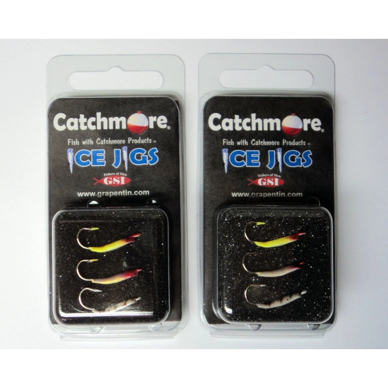 Catchmore Rocker Ice Jigs, TWO Packs (3 jigs per pack)(6 total) #8 Hook #CRJ5-3P