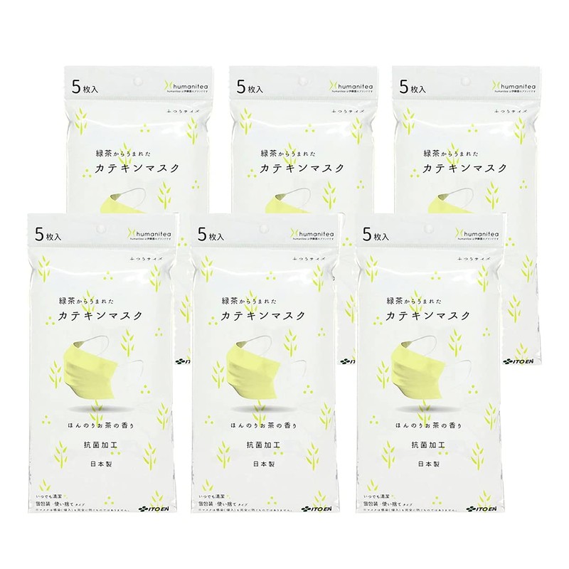 Catechin Mask, Antibacterial, Non-woven Fabric, Individually Packaged, 30 Sheets (5 Sheets x 6 Bags), Itoen