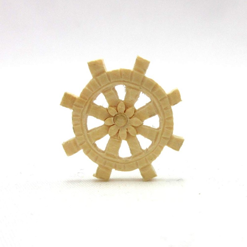 木彫 Category: Buddhist Ritual Implements/Spoked Wheel 2.2 cm Diameter 桧木 (One Side Engraved)