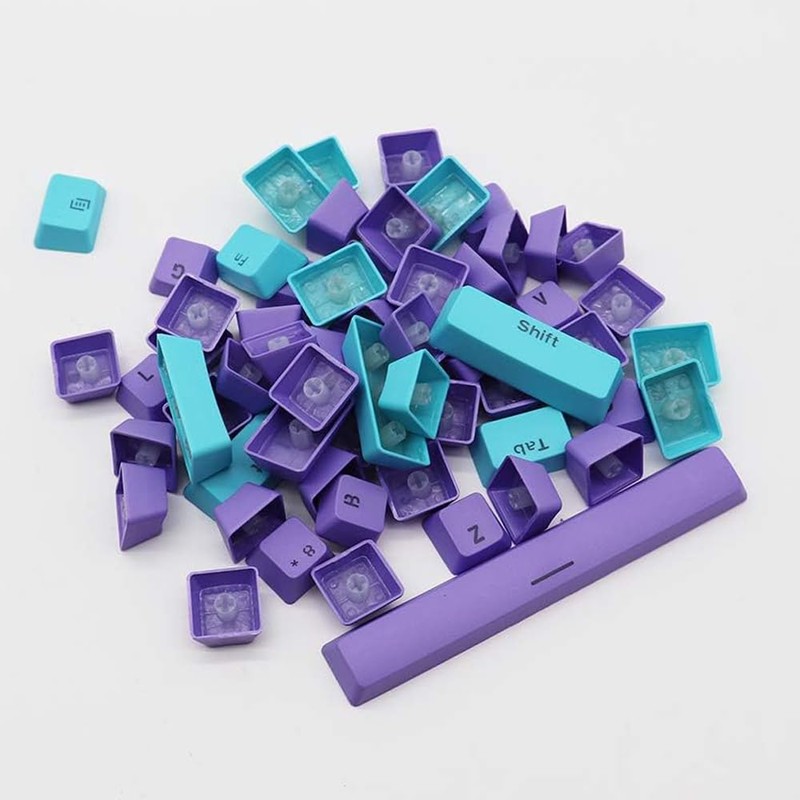 Catekro PBT Keycaps, 104 Keys Standard Doubleshot Keycap Set, OEM Profile, Translucent Keycaps for Diy Mechanical Keyboard(Purple +Cyan)