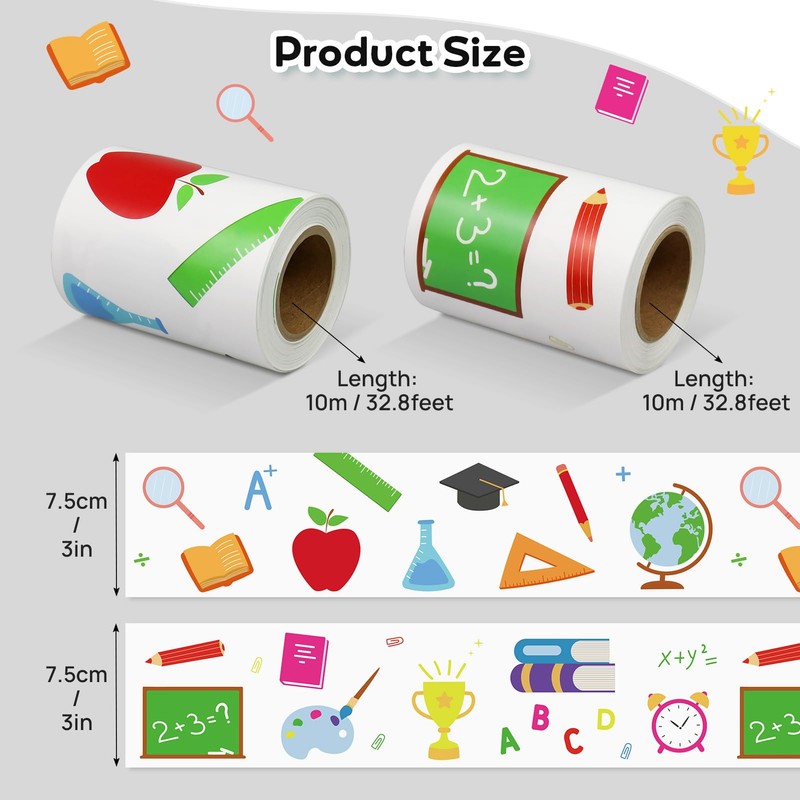 • Size&Qty:2 rolls of bulletin board borders, each roll measures 2.95 inches X 32.8Ft, a total of about 65Ft, can meet the decorative needs.