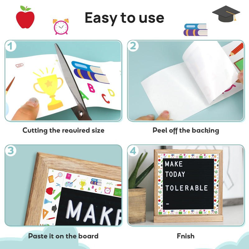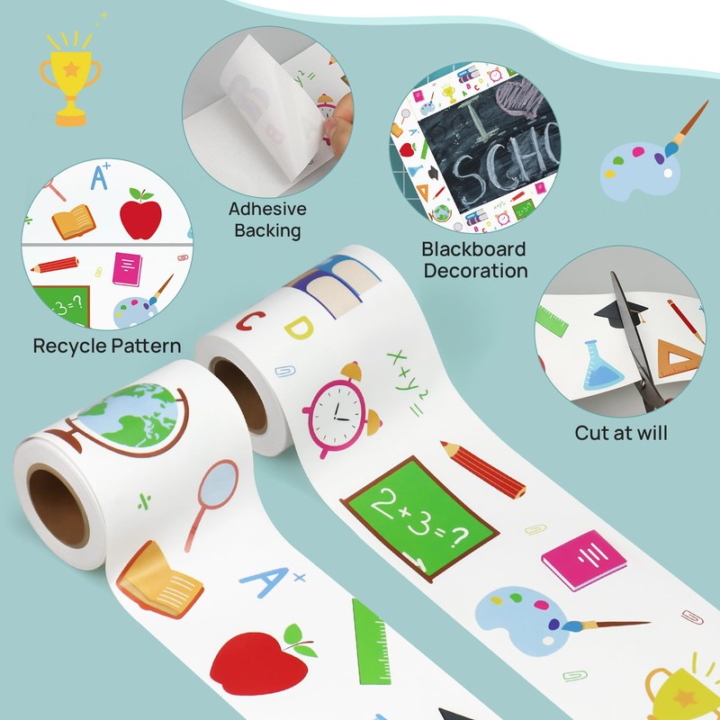 • Widely Application:Bulletin board borders are great decorations for bulletin boards, chalkboards, windows, doors, walls, and can also be used as a decorative accessory for birthday parties, commencement ceremonies, school events, etc., adding colorful accents to the event.