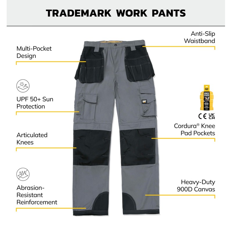 Caterpillar Men's Trademark Work Pants Built from Tough Canvas Fabric with Cargo Space, Classic Fit, Grey/Black, 34W x 30L