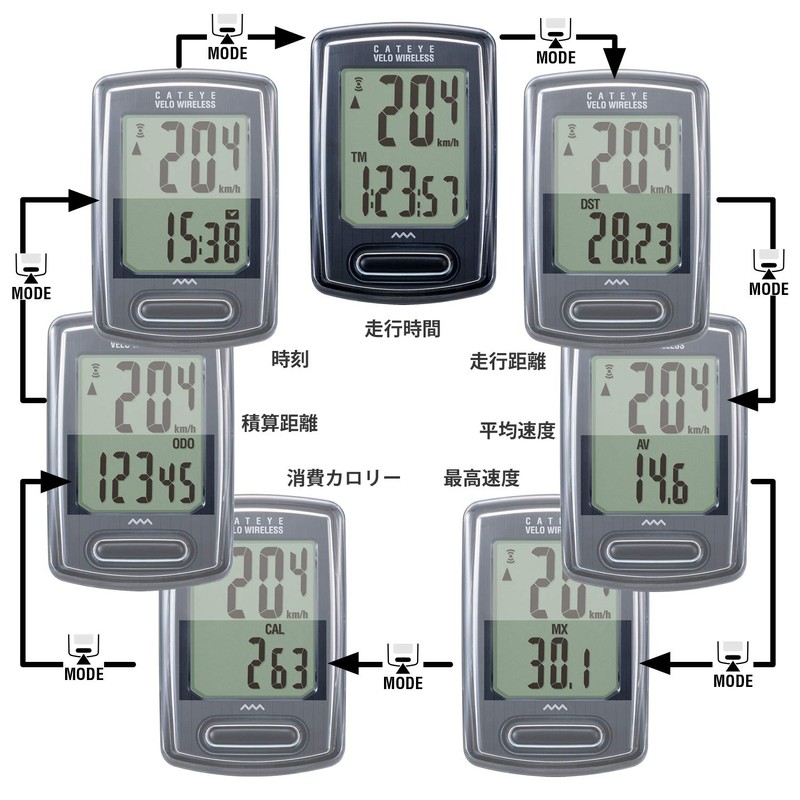 CATEYE VELO WIRELESS CC-VT230W Cycling Computer, Black, Speedometer, Bicycle