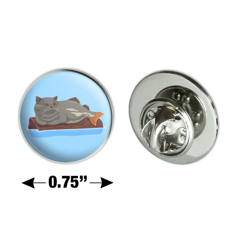 Catfish Mercat Cat Mermaid Sitting On Log Metal 0.75" Lapel Hat Pin Tie Tack Pinback