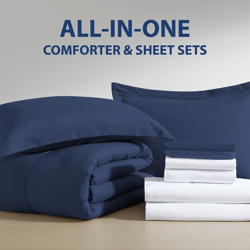 - IRRESISTIBLE BEDDING – Curl up in comfort with our 8-piece bed-in-a-bag set that combines quality, affordability, convenience, and durability all in one package. It features a solid color comforter set, a matching bed skirt, and a crisp, white sheet set base to create a polished bed. Crafted with your comfort in mind, each piece is designed to provide you with the utmost relaxation an durability. Upgrade your bedroom effortlessly and experience the perfect balance of style and functionality.