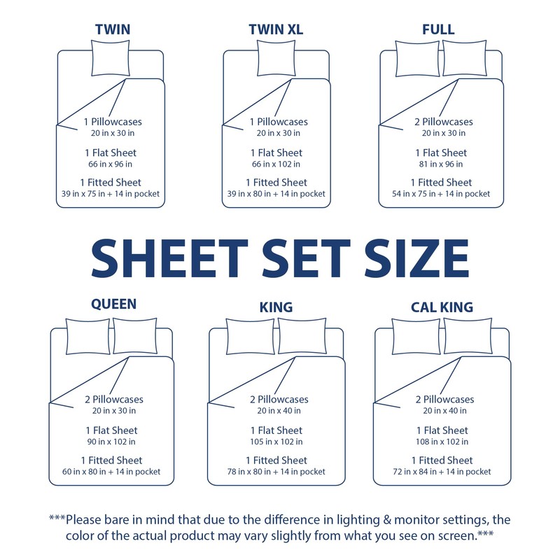 - WHAT IS IN THE PACKAGE: Full set includes: 1 Fitted Sheet 54" x 75", 1 Flat Sheet 81" x 96", 2 Pillowcases 20" x 30".