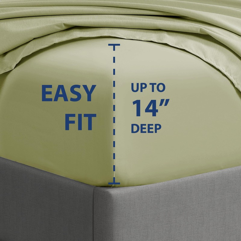 - EASY FIT - The fitted sheet is fully elasticized with extra strength elastic and can easily accommodate mattresses between 10" - 14” thickness for a snug fit.