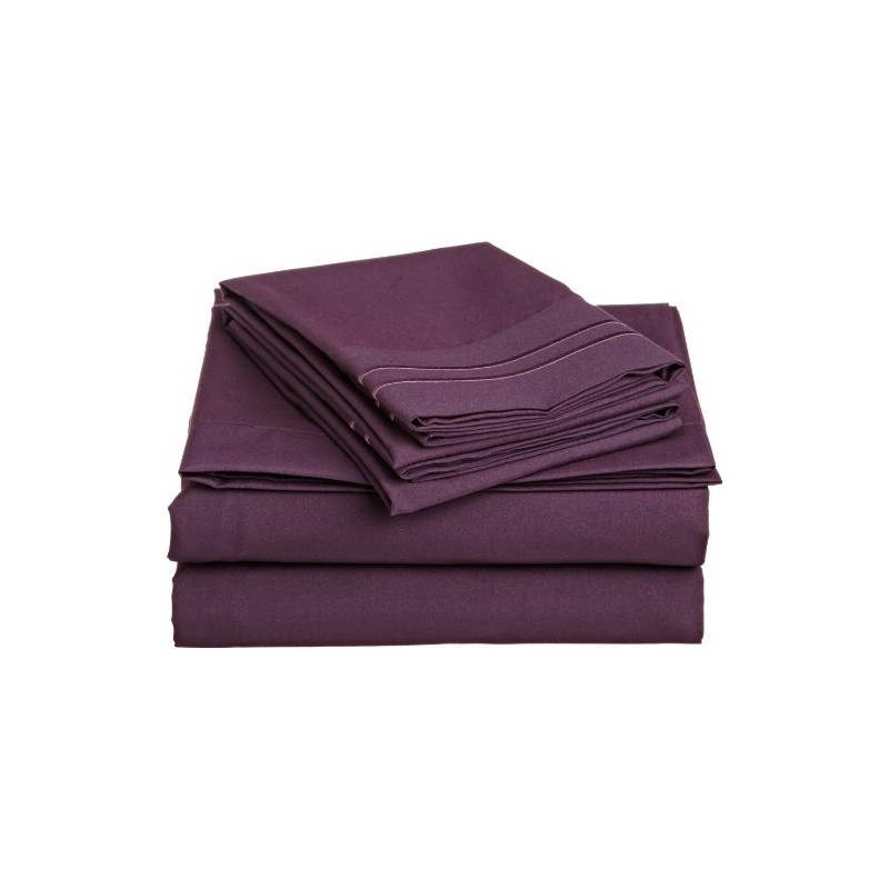 Cathay Home Luxury Soft Microfiber Sheet Set with Embroidered Pillow Cases, Queen, Eggplant