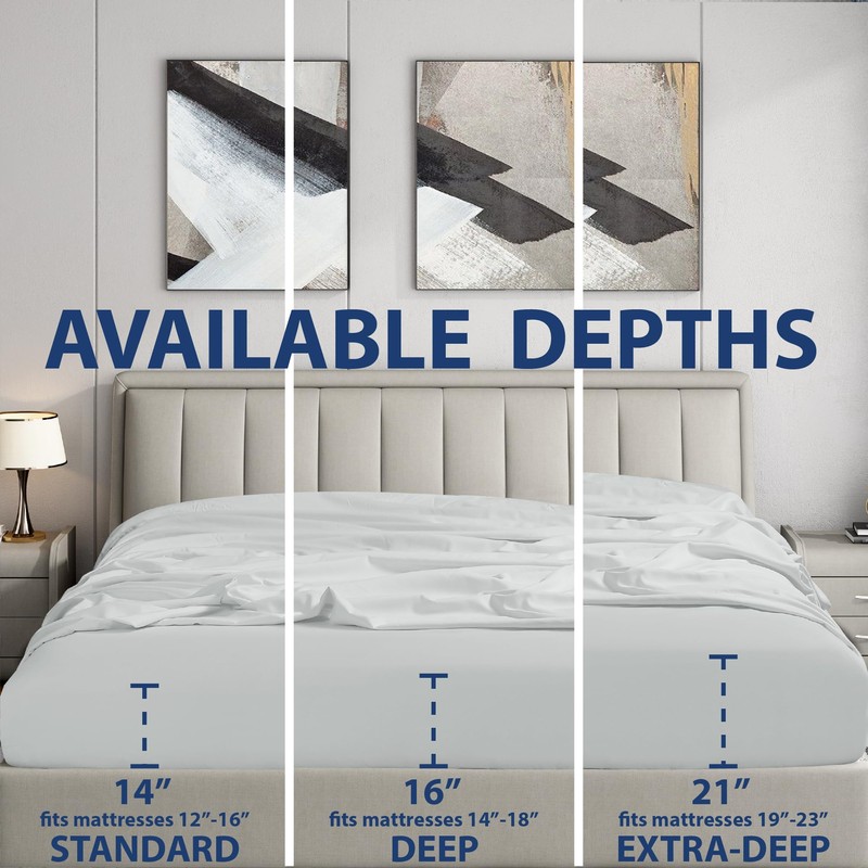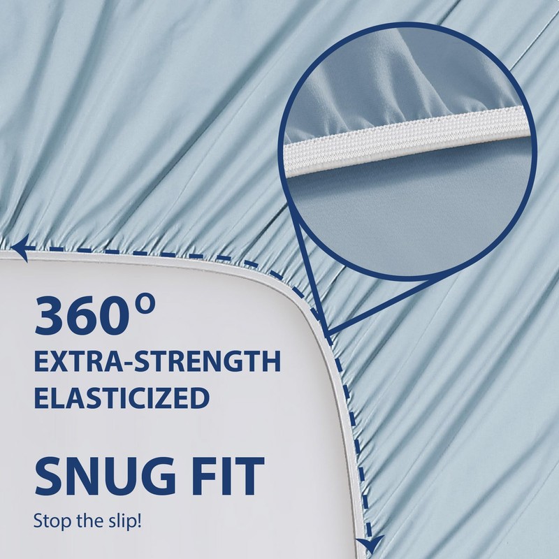 • EASY FIT - Our fitted sheets are fully elasticized with extra strength elastic and can easily accommodate mattresses between 10" - 14” thickness for a snug fit.