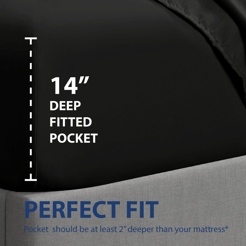 Cathay Home Queen Fitted Sheet - Double Brushed Ultra Soft – Wrinkle & Fade Resistant - 16" Deep Pocket Fitted Sheet Only - Good Fit for 14"-18" Deep Mattress (Queen, Black)