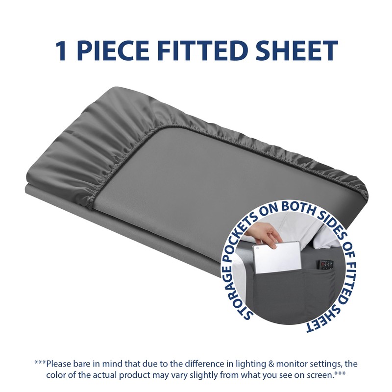 Cathay Home Twin Double-Sided Organizer Pocket Fitted Smart Sheet - Double Brushed Ultra Soft – Wrinkle & Fade Resistant - 14" Deep Pocket Fitted Sheet Only (Twin, Grey)