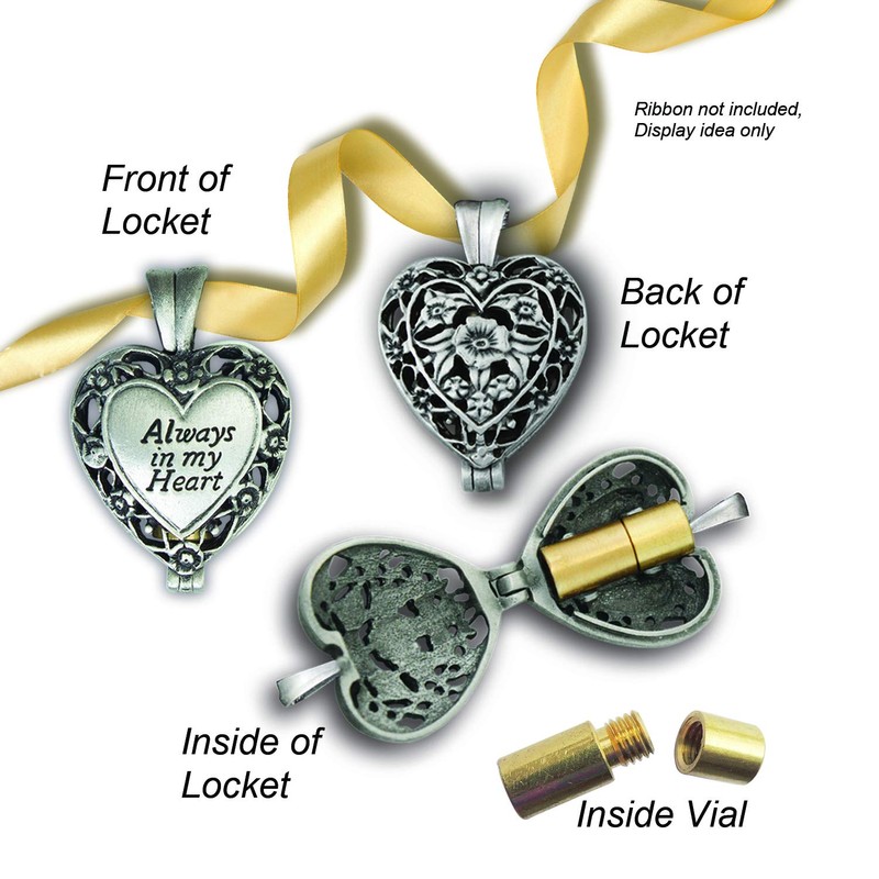 Remember your loved ones forever Keep your loved one close by with our beautiful silver memorial frame. Each frame includes a matching heart-shaped locket with a golden vial that can hold ashes or another memento that keeps their memory alive. Lovingly crafted from elegant pewter metal, each heirloom quality picture frame reads "Those we love don't go away, they will walk beside us every day". Our sophisticated silver frame will add a touch of charm to any room, and will help the memory of your deceased loved ones live on. Our Memorial Picture Frame with Keepsake Vial for Ashes makes a touching gift for anyone who has lost their husband, wife, dad, mom, grandpa, grandma, sister, brother, son, daughter, or guardian. Gifts of hope and faith We are a family-owned and operated designer, manufacturer and wholesale distributor of distinctive inspirational giftware. Through our vast product lines of heart-warming, beautifully crafted gifts, we help our customers celebrate and connect with their loved ones. Whether you are looking for anniversary, baby or bereavement items or you are looking for impulse items such as key rings, companion coins, pocket tokens, visor clips, face masks, or jewelry, we have a gift for everyone on your list.