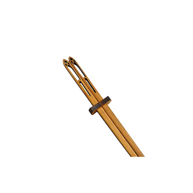 The set includes 2 pair of 10-inch chopsticks, each with the coordinating cathedral window motif. Each chopstick pair includes a coordinating wood holder/rest that slides over the chopsticks (and keeps them together) when not in use. The chopsticks are all-natural, food safe, solid cherry hardwood with a natural color that will deepen with age. Handcrafted in the USA.