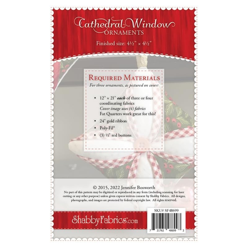 • Follow along step-by-step by searching "How to Make the Cathedral Window Christmas Ornaments Tutorial | a Shabby Fabrics Tutorial" on the Shabby Fabrics YouTube channel.